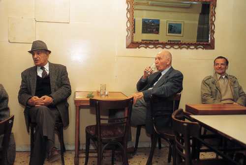 מחזירה אהבות קודמות הניגוד בין שני בתי הקפה מגלם אולי את סיפורה של אתונה המודרנית כולה. כי עדיין, לצד השינויים, מטבע האירו והפנייה למערב, הלב האתונאי, כך נראה, נמצא במזרח, בביזנטיון. מקורות המתח הזה, של מזרח־מערב, קדומים. אחרי שקיעתה של אתונה הקלאסית, האיחוד הרעיוני והתרבותי בין היוונים לתרבויות שכנות בתקופה ההלניסטית, עליית האימפריה הרומית וחלוקתה בסוף המאה הרביעית, הפכה יוון לחלק מן הקיסרות המזרחית. אתונה היתה לעיירה קטנה ולא חשובה באימפריה הביזנטית, שמיזגה את התרבות ההלניסטית עם רעיונות מזרחיים. בירתה, קונסטנטינופול, נתפסת במידה רבה עד היום כבירתה הרוחנית של יוון. במאות ה־11 וה־12, עם ירידת עוצמתה של האימפריה הביזנטית והתחזקות הצלבנים, ולאחר ביזתה השערורייתית של קונסטנטינופול במסע הצלב הרביעי, סבלה אתונה  | | בית קפה מסורתי במדרחוב אירקלידון המחודש שבשכונת תיסיו, מין "נוה צדק" אתונאי. יש מקומות שבהם נראה כי עדיין, לצד השינויים הרבים והפנייה למערב, הלב האתונאי נמצא במזרח, בביזנטיון |