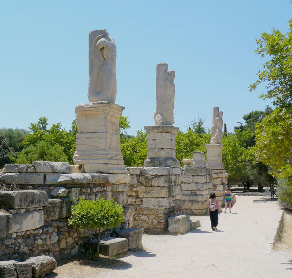 האגורה העתיקה כיכר השוק, האגורה (Agora), היוותה את המרכז הפוליטי, המסחרי, החברתי והדתי של אתונה העתיקה. באגורה נערכו מפגשים ציבוריים והתקיימו משפטים. מעניין לציין כי כל אזרח שעבר כאן יכול היה להפוך לחלק מחבר המושבעים במשפטים שנערכו כאן. חפירות ארכיאולוגיות העלו ממצאים רבים, בהם מקדשים, אולמות ושורות עמודים מקורות (סטואיי). במוזיאון האגורה אפשר לראות ממצאים רבים מהאתר. בסמוך נמצא מגדל הרוחות, מגדל מתומן עם גג חרוטי מהמאה הראשונה לספירה, שעל כל אחת מצלעותיו יש תבליט המסמן כיוון אחר של שושנת הרוחות. האגורה. כאן היה המרכז הפוליטי החברתי והמסחרי של אתונה העתיקה