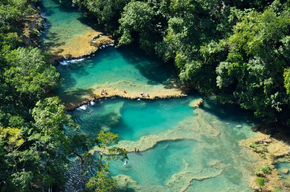 בחרנו שלושה אתרי טבע יפים במיוחד בגואטמלה, כולם נמצאים בפנים המדינה, קצת מחוץ למסלול התיירים הרגיל. ההגעה אליהם לא תמיד פשוטה, אבל הטבע הפראי והנופים שתראו מצדיקים את המאמץ. סמוק שמפיי אחד מאתרי הטבע הקסומים ביותר בגואטמלה הוא סמוק שמפיי (Semuc Champey), אשר שוכן במחוז אלטה וראפאז במרכז גואטמלה, ליד העיירה לנקין (Lanquín). האתר נראה כמו גן עדן טרופי השופע צמחייה ומים. פירוש השם סמוק שמפיי הוא "מים העוברים דרך הסלע" והוא מתאר את תופעת הטבע הייחודית למקום – נהר הקחאבון (Río Cahabón) זורם בשצף מתחת לאדמה, כאשר מעליו יש מעין גשר אבן גיר טבעי באורך 300 מטר. על הגשר יש סדרה של בריכות רדודות ומפלים שופעי מים הנשפכים זה לזה. לבריכות יש צבע טורקיז מדהים ומימיהן צלולים להפליא, בשונה מהנהר הבוצי שמתחת. בסופו של דבר, הבריכה האחרונה והנהר נפגשים, כאשר הם נשפכים יחד למפל גדול.  בריכות ומפלים באמצע הג'ונגל בשמורת סמוק שמפיי