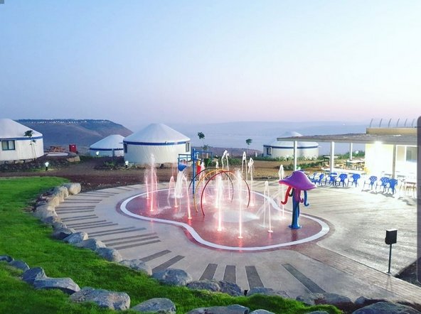 מתחם היורטים ממוקם ממש על קצה המצוק מעל הכנרת, בלי שום דבר שחוסם את הנוף, שהוא מהיפים בארץ. התצפית הזו יכולה להתחרות בכבוד (וגם לנצח) בנקודות תצפית מפורסמות על הכנרת כמו מצפה אופיר או מצפה השלום. את הנוף אפשר לראות משולחן האוכל המשפחתי שצמוד לכל יורט (ובו אכלנו את ארוחת הערב מול שקיעה שאין מנוס מלתארה בקלישאות כמו עוצרת נשימה). אם האוהל נמצא בשורה הראשונה, אפשר לפתוח את הדלת והחלונות ולהשקיף על הכנרת היישר מהמיטה.