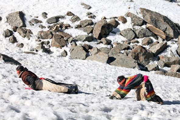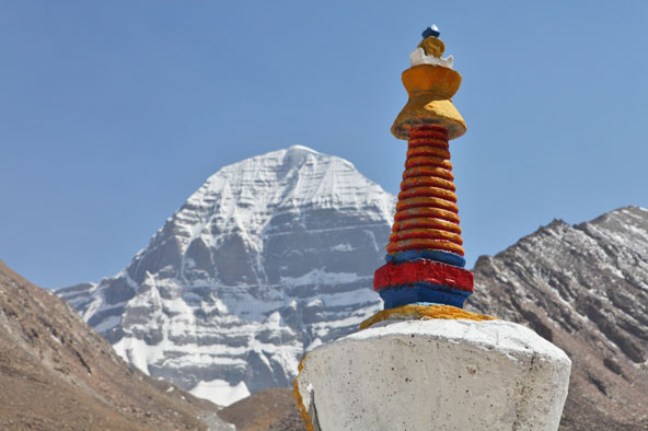 סטופה בודהיסטית, כשברקע פסגתו המעוגלת של הקאילש