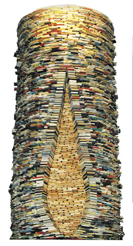 נזקים גדולים נגרמו לעיר פראג, והמים ששצפו ועלו מנהר וולטבה (Vltava) פגעו בבניינים ובאתרים היסטוריים רבים בעיר העתיקה. אחד האתרים שניזוקו באופן קשה היה בניין הספרייה העירונית, ששתי שלוחותיו, במחוז קרלין (Karlin) ובמחוז אולסוביץ' (Holesovice), נפגעו אף הן. בבניין הספרייה בעיר העתיקה של פראג גלשו המים אל קומות המרתף, ובכמה אולמות אף הגיעו לגובה של חמישה מטרים. עובדי המקום הצליחו במאמץ רב ובסיוע מתנדבים לפנות בזריזות את הספרים העתיקים למקום מחסה. פחות מזל היה לשלוחת הספרייה באולסוביץ', שם נהרסו כ־30 אלף ספרים, בהם כ־20 אלף תעודות וספרים נדירים. המסמכים מאולסוביץ' הועברו אל תאי קירור גדולים מחוץ לעיר, שם אוחסנו בטמפרטורה של שלושים מעלות צלסיוס מתחת לאפס, עד שיתחיל שיקומם. בין הספרים שהועברו להקפאה נמצאו כתבי יד שערכם רב מאוד – בהם כרך של התנ"ך מפראג שהודפס בשנת 1488, כ־18 אלף תעודות עתיקות, כמאה ספרים מהמאות ה־16 וה־17, וכ־3,000 ספרים מהמאה ה־18. כדי לשקם את הספרים והתעודות ולהשיבם, במידת האפשר, למצבם המקורי, נערכה להם סדרה ארוכה של תהליכי ייבוש מורכבים ויקרים במכונות ואקום, בחדרי ייבוש מעץ, באמצעות תהליכים כימיים ועוד. כאשר ביקרנו בחודש שעבר בספרייה העירונית בפראג אי אפשר היה לראות זכר לדרמה הגדולה שהתחוללה במעמקי הבניין לפני כשלוש שנים. אבל באולם הכניסה הגדול של הספרייה ניצב פסל מרשים הנקרא IDIOM, שהיה לסמל למאמצים הרבים להצלת הספרים ושיקומם. הפסל נוצר ב־1994 על ידי האמן הצ'כי Matej Kren. הוא הוצג בכמה תערוכות חשובות בעולם, ובכולן זכה להצלחה גדולה. ב־1998 הוצב הפסל דרך קבע באולם הכניסה הראשי של הספרייה. אף שנוצר לפני השיטפונות הגדולים, הרי שלאחריהם הוא קיבל משמעות חדשה. הפסל נראה כגליל שקוטרו כשני מטרים וגובהו כחמישה מטרים, והוא עשוי כולו מספרים המודבקים זה על גבי זה. פתח צר, בצורת טיפת מים מוארכת, מאפשר למבקרים לתחוב את ראשם פנימה ולהציץ אל פנים הגליל. מבקרי אמנות פירשו את הפסל פירושים שונים; יש שהסבירו שה־IDIOM עוסק ביחסים המתקיימים בין חללים פנימיים לחיצוניים ובין חלק לשלם, ויש שאמרו שהוא מטשטש את הגבולות שבין דמיון למציאות. הפסל הוא גם שיר הלל לספר — אחד ממוצרי התרבות המובהקים שיצר המין האנושי. הצצה אל תוככי IDIOM מגלה מראה יחיד במינו – שילוב של מנורות ומראות יוצר בצופה את הרושם שהוא מביט אל תוך מנהרה אינסופית, מעין באר מילים חסרת תחתית.