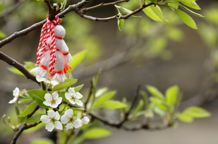 באביב כל היופי הזה נצבע בפריחה מופלאה, הנחלים והנהרות מתמלאים במים, החסידות ששבות ממסע הנדידה מקננות על ראשי עמודים, צריחי כנסיות וארובות נטושות. אבל לא רק הטבע חוגג באביב, גם האנשים מתמלאים בחדווה. בתחילת האביב, בחודש מרץ, צצים בכל פינה חוטים לבנים-אדומים – הם נקשרים לפרק כף היד, נתלים על דלתות הבתים, נכרכים סביב ענפי העצים שזה עתה החלו לפרוח. הקישוטים הללו, שלפעמים באים גם בצורה של בובות צמר קטנות בצבעי אדום-לבן, מסמנים את בוא האביב: הלבן מסמל טוהר, האדום מסמל חיים ותשוקה, והיותם כרוכים זה בזה מראה את מחזוריות החיים ואת ההתחדשות של הטבע והאדם בעונה הזאת.