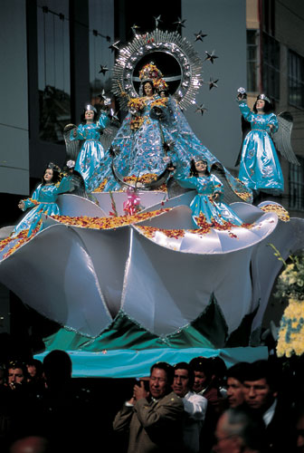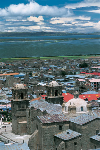 האם הגדולה, השומרת על השטח הזרוע. על כן בחגיגות הקשורות לאֵלָה שהגיעה מעבר לים מתקשטים המאמינים בפרחי בר, בקלחי תירס ובצמחי מים – כל מה שמסמל את האם הגדולה, אשר בגופה נוצרת החקלאות. ליד האגם, קרוב מאוד לבירת ממלכת קוֹלְִיָה של שבט האיימרה, בנה מלך האינקה עיר מיוחדת, כדי שתשמש אכסניה לעולי הרגל למקדש השמש אשר באגם. בעיר זו הוא בנה בתי תמחוי, מרחצאות לטהרה, בתי עולם המקשרים את החיים לעולם המתים ומחסני אוכל. את העיר החדשה כינה קוֹפקבּנה, היינו "המצפה הכחול". קשה לדעת את מקומה המדויק של העיר, כי בשני המקומות הקרובים זה לזה, קוֹפקבּנה שבבוליביה ופוּנוֹ שבפרו, יש שרידים העשויים להצביע על קיומה של עיר מתקופת האינקה. הספרדים חשבו שאין אתר מתאים יותר מאשר חופי הימה הגדולה לקיום הקַנְדְלֵמאס – חג הטהרה של מרים הקדושה, שנחגג בעבר בכל רחבי העולם הנוצרי בשניים בפברואר, ארבעים ימים לאחר תאריך לידתו של ישו. כך הגיעה בתולת הקנדלריה הספרדייה לחופי האגם. שנים לאחר הכיבוש הציע אחד מבני משפחת המלוכה של האינקה לשליטים הלבנים לפסל במימונו דמות של הבתולה, שתהיה מרכז הפולחן והחגיגות. ייצור הפסל – שבעיני המקומיים היה התגלמות האם הגדולה ועבור הספרדים הבתולה הקדושה – נמשך זמן רב, אבל לבסוף קם הפסל והיה. הדמות עשויה מצמח האֲגָבָה, מצופה בצבע כסף ובפרחי מתכת ומקושטת בדים בשלל צבעים. על ראש האלה מונחים כתר זהב וחצי סהר של אבנים יקרות, ובידיה הילד ישו, שגם על ראשו כתר זהב. תושבי קוֹפקבּנה מספרים שמיד לאחר הופעתה של הבתולה הקדושה התחילו להתרחש נסים במקום, כמו גם בעיר השכנה פוּנוֹ, שגם בה פוסלה דמות הבתולה הקדושה כדמות הפסל שבקוֹפקבּנה. נכים קמו על רגליהם, עיוורים התחילו לראות, והאלה הופיעה בחלומותיהם של המאמינים וגם בהקיץ, במיוחד כשרעו את עדרי הלמה במרחבים השוממים מסביב. המקדשים המקומיים בבוליביה ובפרו נהפכו לאבן שואבת לעולים לרגל, שבאים לגעת בדמות הקדושה ולזכות בנס. בין הבאים יש קבוצות רקדנים ונגנים, המביאים איתם את מסורתם העתיקה, וצופים רבים, הבאים לחזות בצלילים ובצבעים ולחיות יחד עם המקומיים את אחת החגיגות החשובות ביותר בלוח השנה הדתי שלהם. ימת טיטיקקה היא רחם העולם, ממנה הכל נולד. כרחם קשורה הימה בטבורה לאם הגדולה, לפאצ'אמאמה – אמא אדמה, שבה הכל נובט ובה הכל שוקע |