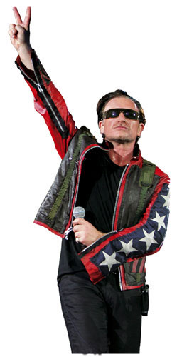 בונו, סולן להקת U2, הוא ככל הנראה האירי המפורסם ביותר בעולם היום. מספרים לדמותו של איש השנה של מגזין "טיים" ל־ 2005 פורסם 20.8.11 |