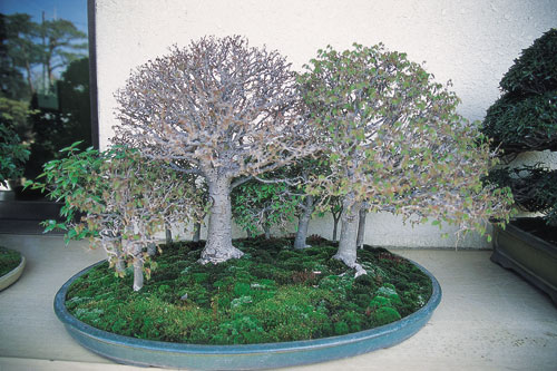 בוֹנְסאי הוא אמנות הפרדוקס. מצד אחד, זהו עץ אמיתי, חי; מצד שני, זו מיניאטורה בעציץ. מצד אחד, כדי שהיצירה תהיה מוצלחת, אסור להתנגד לטבעו של העץ; מצד שני, אופן עיצובו מסרס את התפתחותו הטבעית. בונסאי (צמח או עץ בעציץ; מילולית: בון – מגש או עציץ, סאי – לטפח) הוא הרבה יותר מאשר עץ בעציץ. זהו ניסיון להציג מחדש את הטבע עצמו בעציץ קטן וכך להעביר את הרושם של עץ עתיק, יער או נוף במיניאטורה טבעית. הרמוניה היא מלת המפתח בעיצוב העץ, וערכי האסתטיקה והיופי משקפים מיקרוקוסמוס של הטבע כולו. אמנות הבונסאי התפתחה בסין ונדדה משם ליפן. למערב היא הגיעה מיפן, ולכן אומץ השם  | | יער בונסאי. כל עץ או שיח יכולים להשתתף בחגיגת העיצוב. לא מדובר בעצים ננסיים, אלא בעצים רגילים שנכלאו בתחום מחייה צר |