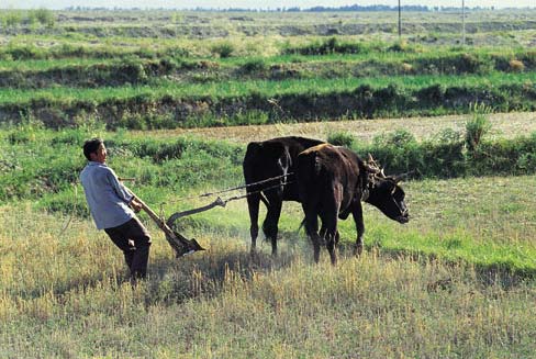 | | חריש בעזרת פר במערב סין | צילום: אייל ברטוב |