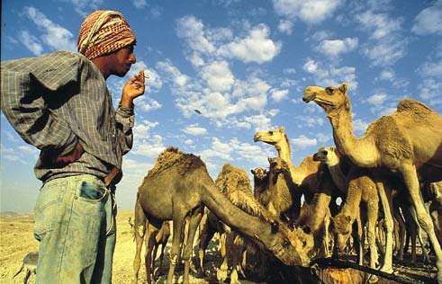 | | עדר גמלים בנגב. לביות היה יותר משלב אחד. בתחילה לכדו גורי חיות סמוך להמלטה, וגידלו אותם במכלאו בסביבת מגורי אדם. בהמשך, גרמה הסביבה החדשה להיווצרות תכונות התנהגותיות מיוחדות, שהקלו על הטיפול בחיות | צילום: טל גליק |