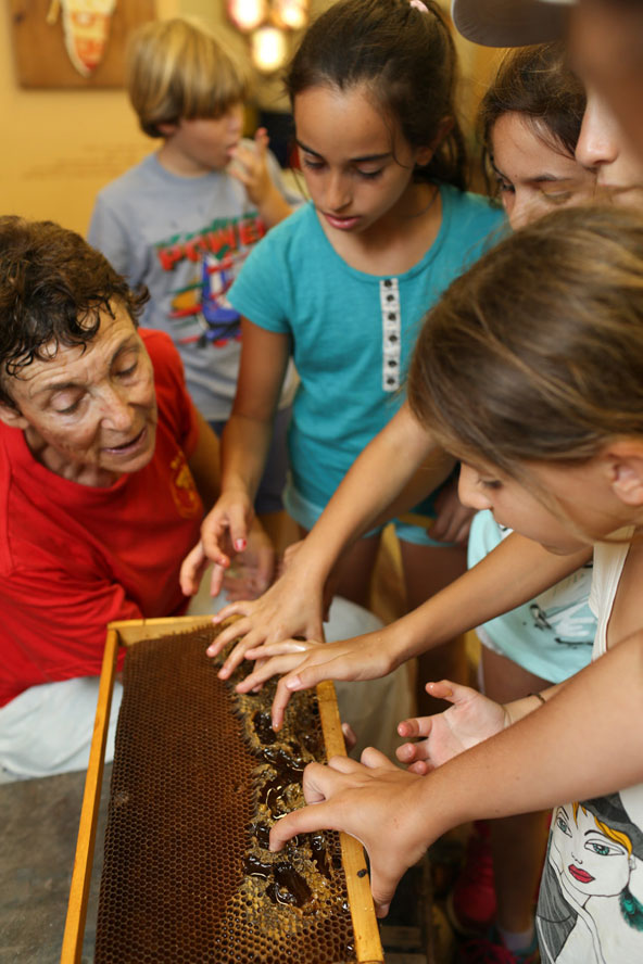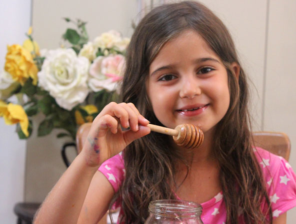 מכוורת אופיר באלון הגליל הביקור כולל צפייה בסרט המתאר את עולם הדבורים ואופן הגידול והטיפול בהן, ניתן להתבונן בדבורים שבתוך כוורת זכוכית, לרדות דבש, ללבוש בגדי דבוראי וללמוד על תוצרי הכוורת השונים. פעילויות נוספות כוללות הכנת נר מדונג וטעימה מפיתה מרוחה בדבש. במקום יש חנות מוצרי הכוורת. ניתן לשלב את הביקור במכוורת עם סיור ביקב יפתחאל הסמוך ולטעום מהיינות. כמה? 25 שקל מעל גיל 3, פיתה בטבון בתוספת תשלום. מתי? שבת 29 באוגוסט ושבת 5 בספטמבר, בין השעות 14:00-10:00. טלפון: 052-2824644 אתר אינטרנט יערת הדבש באלוני אבא הפעילות ביערת הדבש כוללת סיור במכוורת, צפייה בסרט על חיי הדבורה, לבישת חליפת דבוראי, צפייה בכוורת זכוכית וחיפוש אחר המלכה. לאחר מכן ניתן להתנסות ברדיית דבש מחלות דבש אמתיות. במסגרת הרדייה הילדים מפעילים צנטריפוגה ידנית קטנה ורואים איך הדבש זורם מתוכה לחבית ומוזמנים לקחת כפיות ולטעום כאוות נפשם. כמה? כניסה ללא תשלום, פעילות למשתתף מעל גיל חמש 35 שקל לסיור ורדיית דבש. מתי? מיום ראשון 23 באוגוסט פתוח בשבתות ובחגים בין השעות 17:00-10:00, באמצע השבוע – בתיאום מראש בלבד. טלפון: 054-4437402, 077-9136549 טעימה מתוקה. בכל שנה צורכים הישראלים כ-4,000 טונות של דבש | צילום: יערה רפאלי