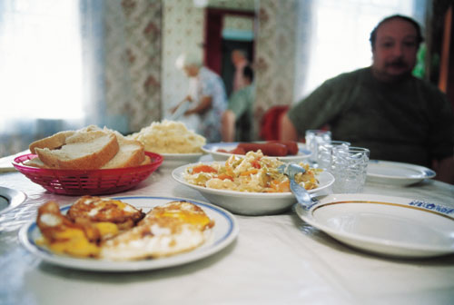 בתים בודדים נראים לצד הדרך, ושדות מעובדים שעליהם רכונים סינים. המחוז יודע בשנים האחרונות הגירה רחבת ממדים: סינים רבים חוכרים אדמות מתושבי המקום ומעבדים אותן. לבד מחקלאות, בולטים הסינים בסחר, בהלבשה ובהסעדה. ערב קודם לכן הזדמן לנו להתענג על המסעדנות הסינית: במסעדת אי השמש שרה להקה מקומית שירים אמריקאיים במבטא כבד ומלצריות סיניות הציעו תפריט, שכלל מרק צבים, קרעפלך צפרדעים ומאפי תולעי משי וציפורי דרור. אמורזט הוא יישוב קטן מוזנח, זרוע עצי אקליפטוס ושיחים קוצניים. בהמשך הדרך, מספר לנו עובר אורח, יש שדות רבים של מריחואנה. בבית המלון בבעלות הסינית חובר אלינו מישה מלניקוב, ראש הקהילה היהודית במקום, ועוזרו, יונה ליבוביץ'. אנחנו משוטטים באמורזט, יורדים לנהר האמור (Amur) הרחב. מצדו השני סין: בנייני ענק, מפעלים וחיוניות רבה. רחל מיכאלובנה גלקובסקאיה, בת 75, גרה באמורזט מ־1932. היא לא חדלה לנוע אף לרגע: במטבח הסמוך לבית מתבשלות נקניקיות מתוצרת מקומית וביצים מהתרנגולות שלה. היא חותכת סלט מירקות שגידלה בגינה, מגישה לחם שאפתה, יורדת למרתף כדי להוציא קומפוט תפוחונים נפלא שרקחה ומוזגת כל העת וודקה לכוסיות קטנות – לחיי המתיישבים בפעם הראשונה, לחיי המתיישבים בפעם השנייה, ובפעם השלישית רק כדי להשלים את הרמת הכוסיות לשלוש. "פעם היה פה טוב מאוד", אומרת גלקובסקאיה, ובתוך כך היא ממשיכה לנוע בזריזות, "אז לא סגרו דלתות ולא היו מנעולים. אף אחד לא גנב כלום. כל אחד נכנס ויצא מתי שהוא רוצה. פחדתי מכלבים. עכשיו אני חייבת כלב". יונה ליבוביץ מפציר בנו שנבוא לביתו. הוא גר בדירת שיכון קטנה. בסלון ריהוט ישן ופשוט. בארון תלויות שלל מדליות. "ב־1948 סיימתי קורס טרקטוריסטים ונסעתי בטרקטורים מתוצרת צ'ליאבינסק", מספר יונה. "קיבלתי מדליה ב־1975 על עיבוד 2,500 דונם אדמה. כשהייתי ראש צוות בקולחוז, היו מאתיים ראשי בקר. בתוך תשע שנים הגעתי ל־800. בתור עובד מצטיין שלחו אותי לתערוכה במוסקבה ב־1975". הוא מראה לנו תמונות מהביקור במוסקבה. גבר נאה בחליפה שחורה, ניכר שהיה בריא ומרוצה.