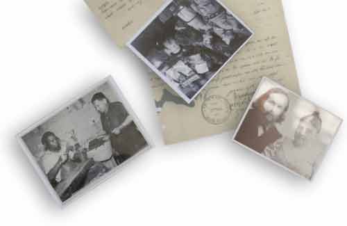 צילומים ומכתבים של בני הזוג חנקין (בתמונה מימין) המוצגים בבית הקפה |