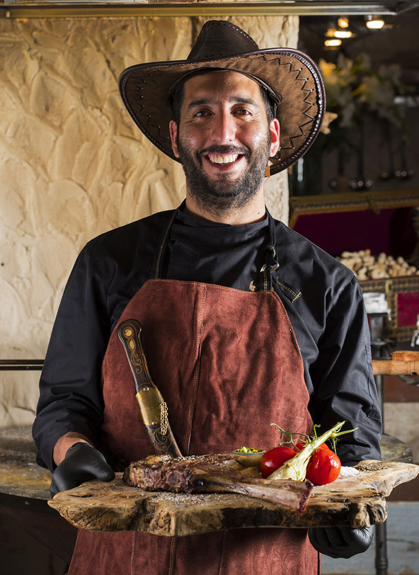התפריט מתבסס על טהרת נתחי בשר גדולים ומשובחים, המוגשים באופן מקורי ויוצא דופן, לצד אווירה קסומה ולא שגרתית של בית ציידים כפרי. מגוון נתחי בשר טריים ואיכותיים ניצלים על האש החשופה בגריל העצים ההולנדי שממוקם במרכז המסעדה. ולצדם מוגשים סלטים עשירים, שמשתלבים מצוין בטעמי הבשר.
