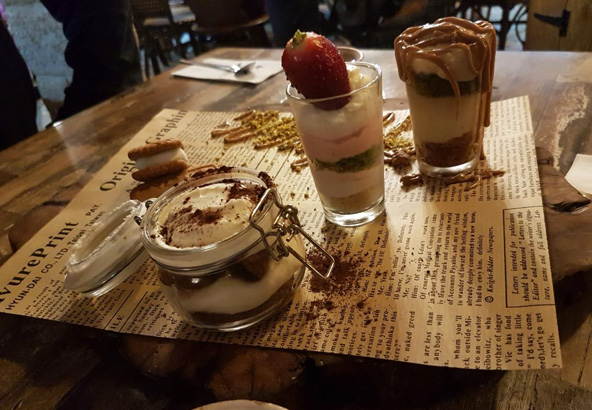 על הקינוחים אחראית הקונדיטורית שהיא גם גיסתו של השף. פלטת המתוקים שהזמנו כללה פרפה תות, פרפה מוקה וטירמיסו, ש"הפיל" אותנו סופית.