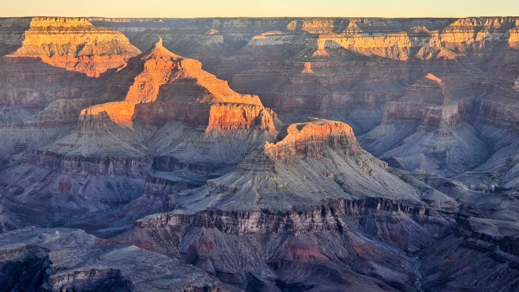 בביקור בשבילים פחות מוכרים ובנקודות אגדיות כמו Hopi Point ו-Desert View, הרגשנו את הפאר של הקניון בשינויים העדינים של אור וצבע לאורך היום, יחד עם נופים רבים של חלקים מנהר הקולורדו הזורמים ומתעקלים בקניון הפרהיסטורי. בין לבין, השהייה בכפר גרנד קניון, הממוקם באמצע יער עבות, הייתה מקום מפגש יומי עם צבאים ואיילים, העוברים ושבים בין בתי המגורים. אחת החוויות האהובות ביותר שלנו הייתה צפייה בזריחה מעל הקניון. קרני השמש הראשונות שציירו את הקניון בגוונים זהובים היו תזכורת עמוקה לפאר ולחוסנו של הטבע.