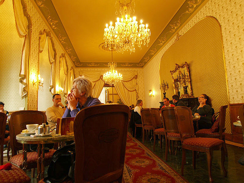 בעוד שבתל אביב בתי קפה נפתחים ונסגרים חדשות לבקרים, באירופה, כמעט בכל עיר גדולה יש לפחות בית קפה אחד שפעיל כבר למעלה ממאה שנה והפך למוסד מקומי. מעט מאוד השתנה בחלק מבתי הקפה האלה במהלך השנים, לפחות בכל הנוגע לעיצוב (שהוא לרוב מפואר מאוד, עם כורסאות קטיפה ושנדלירים מקריסטל) ולתפריט (שכולל עוגות דקדנטיות המהוות סכנה ברורה ומיידית לרמת הסוכר בדם של הסועדים). האוכלוסייה דווקא השתנתה – פעם הקהל היה מורכב מאמנים, סופרים, אנשי רוח ואפילו מלכים ומלכות, שבעודם יושבים בבית הקפה הם ניהלו ויכוחים ודיונים, העלו רעיונות, יצרו, כתבו, שיחקו שח והתאהבו. חלקם היו לבושים במיטב מחלצותיהם והתענגו על קפה משובח ועוגה בבית קפה מפואר בווינה, אחרים היו אמנים חסרי פרוטה שישבו במשך כל היום עם אותו ספל תה בבית קפה פריזאי. היום קהל המבקרים בבתי הקפה האלה מורכב בעיקר מתיירים, שרוצים לשבת ליד השולחן שבו לנין שיחק שח, או אולי על הכסא שעליו ישב פיקאסו כשפגש לראשונה את אהובתו דורה מאר. בחרנו כמה בתי קפה מיתולוגיים באירופה, חלקם מתייחדים ברשימת אורחים מכובדת, אחרים מתגאים בפאר והדר שכבר קשה לראות היום, ויש בהם כאלה שהקינוחים המופלאים שלהם סוחטים קריאות עונג מאז ועד היום. פריז הקפה הפריזאי המפורסם ביותר הוא ככל הנראה קפה דה פלור (Café de Flore). בית הקפה הזה, ששוכן בבולוואר סן ג'רמן, נוסד ב-1885, והיה בשיא תהילתו בשנות השלושים של המאה הקודמת, אז פקדו את המקום דרך קבע סופרים וציירים מפורסמים, כמו אלבר קאמי, גיום אפולינר ופיקאסו (שאפילו פגש בבית הקפה הזה את דורה, אהבת חייו). מאוחר יותר, בתקופת מלחמת העולם השנייה ז'אן פול סארטר וסימון דה בובואר נמנו על לקוחותיו הקבועים. בשנות השישים בית הקפה הפך למעוזה של תנועת הגל החדש בקולנוע הצרפתי, ומי שהגיע למקום יכול היה לפגוש בו את רומן פולנסקי, בריג'יט ברדו, ואלן דלון, לצד מעצבי העל איב סן לורן, גי לרוש ופאקו רבן. קפה דה פלור הפך לסמל פריזאי, כמעט כמו מגדל אייפל, והונצח בציורים רבים ובגלויות לתיירים. היום מרבית הלקוחות הם תיירים שבאים לחלוק כבוד לבית הקפה הכי מפורסם בעולם, למרות שבחדרים הפנימיים עדיין תוכלו לראות אנשים יושבים וכותבים. העיצוב הוא בסגנון האר-דקו, והתפריט סטנדרטי ויקר. שווה להגיע ולו בשביל האפשרות שהמוזה של פיקאסו תשרה גם עליכם אם רק תשבו ליד אחד משולחנות המהגוני במקום. המתחרה הגדול של קפה דה פלור בתקופה ההיא היה קפה לה דו מאגו (Les Deux Magots) הסמוך, שהחל את דרכו ב-1812 ברחוב בוסי ועבר ב-1873 לסן ג'רמן. גם קפה דה מאגו היה בשיא פריחתו בשנות השלושים, אז פקדו אותו לא מעט אמנים מהזרם הסוריאליטי לצד סופרים ואינטלקטואלים. הלקוח הקבוע המפורסם ביותר בדה מאגו היא ארנסט המינגוויי, ובשולחנות הסמוכים היה אפשר לראות את לואי אראגון, אנדרה ז'יד, אנדרה ברטון ואחרים. מוסד פריזאי אחר, ששמו יצא למרחוק לא רק בזכות אורחיו (שכללו את מרסל פרוסט, קוקו שאנל ואחרים) כי אם בזכות מאפיו האלוהיים הוא אנג'לינה (Café Angelina), שהוקם ב-1903 על ידי קונדיטור אוסטרי שקרא למקום על שם ביתו. למרות שהמקום הוא סלון תה, אחת הסיבות המרכזיות להגיע למקום היא דווקא השוקו האפריקאי – שוקו חם, סמיך וטעים להפליא, שמוגש עם קערית קטנה וגדושה בקצפת. הסיבה השנייה היא קינוח המון בלאן, שעשוי ממרנג, קצפת ומחית ערמונים. יש גם אקלרים, מקרונים, טארטים של פירות, מיל פיי ועוד כמה מהקינוחים שהצרפתים כל כך מתמחים בהם. המקום מפואר במיוחד – שתי קומות עם שולחנות שיש וכורסאות עור עמוקות. למרות ששמו של המקום והמיקום המנצח שלו (ברחוב ריבולי, בסמוך לגני טיולרי ומוזיאון הלובר) הופכים אותו למלכודת תיירים, מדובר במלכודת שכדאי להילכד בה, ולו בשביל לטעום את קינוח המון בלאן המופלא. וינה המפורסם מכולם הוא קפה זאכר (Sacher Café), ששוכן בחזיתו של מלון זאכר, מול בית האופרה של וינה. בית הקפה מפורסם יותר מכל הודות למנת הדגל שלו – הזאכר טורט, שמורכבת משתי שכבות שוקולד, ריבת משמש ב