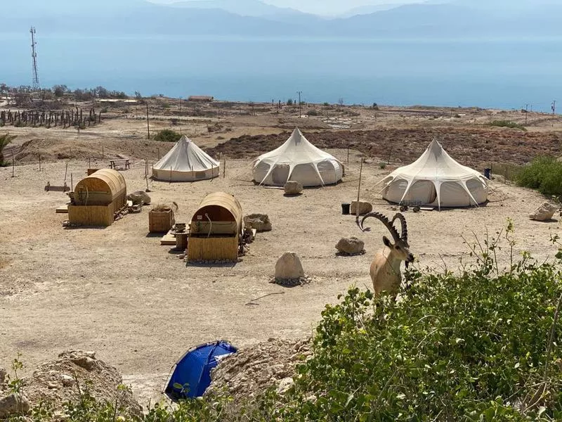 אתר הגלמפינג בדולינה ממוקם באחת מנקודות הנוף היפות בארץ – מתחת לקיבוץ עין גדי, בסמוך לנחל ערוגות, מול הנוף מרחיב הלב של ים המלח והרי מואב. היעלים שמסתובבים חופשי הם חלק בלתי נפרד מהנוף. אוהלי הגלמפינג, אוהלי פעמון לבנים ומרווחים שיכולים לארח עד שמונה אורחים, ממוזגים במזגן עצמתי ומאובזרים במזרנים איכותיים, תאורה ושקעים לטעינה. בתשלום נוסף ניתן לקבל מצעים ושמיכות. במתחם יש מקלחות ושירותים נקיים עם מים חמים ומטבח משותף.