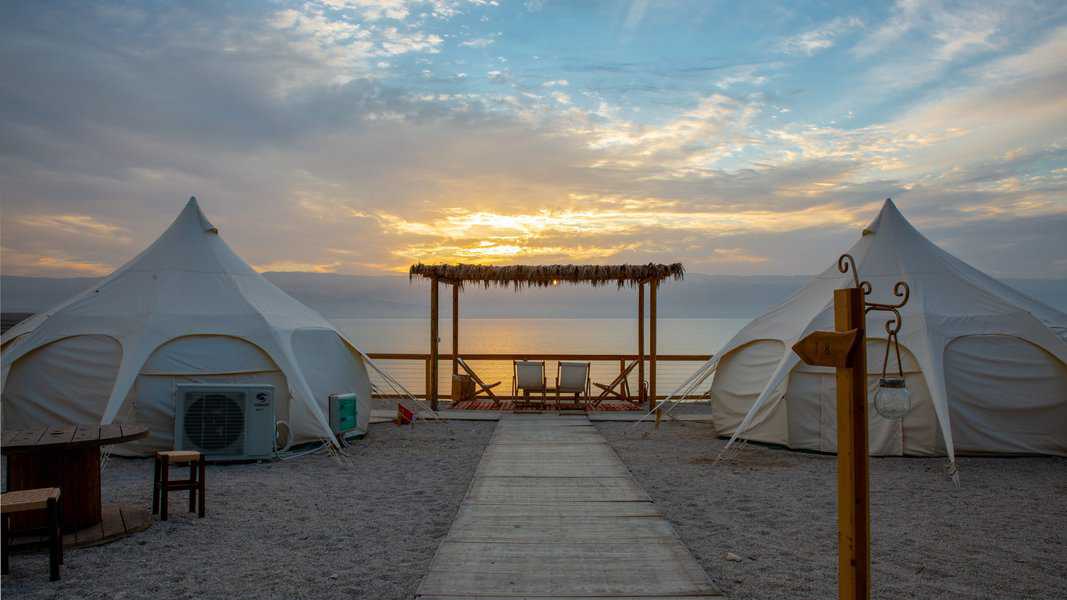 חוף ים המלח נמצא במרחק שתי דקות הליכה בלבד, אבל אם גם זה רחוק בשבילכם, יש במתחם שכשוכיות מרעננות ומוצלות מול הנוף. בחוף יש שני ברים בהם מוגשות גם ארוחות קלות (כולל ארוחת הבוקר הכלולה במחיר), והם משרתים גם את אורחי הגלמפינג. כדי לשדרג את החופשה,תוכלו להזמין פינוקים שונים כמו בקבוק יין או טיפולי ספא.