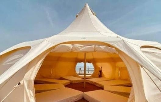 גולת הכותרת (מלבד הנוף, כמובן) היא המרחב המשותף שכולל פינות ישיבה ופינות זולה נעימות, מבחר משחקים, שולחן סנוקר, שולחן פינג פונג ובר שמציע גם ארוחות קלות, כך שאפשר לבלות במתחם שעות נעימות ורגועות מול הנוף. בנוסף, ספרינקלרים שמשפריצים מים מצננים את האורחים גם מחוץ לאוהל הממוזג.