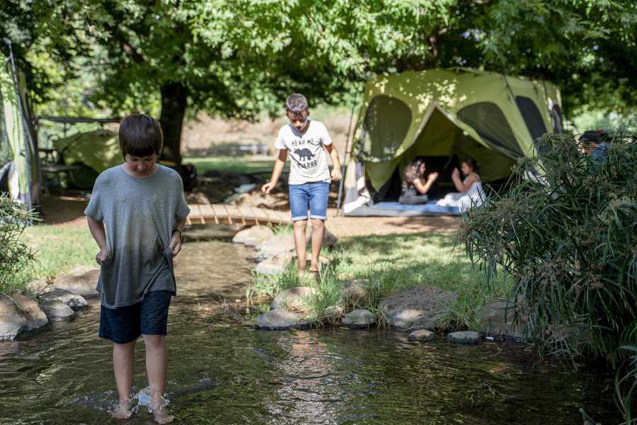 בין האוהלים, אוהלי הגלמפינג והצימרים של כפר הנופש מעיין עוברים פלגי מים שמזמינים לטבול בהם | צילום: creaTV