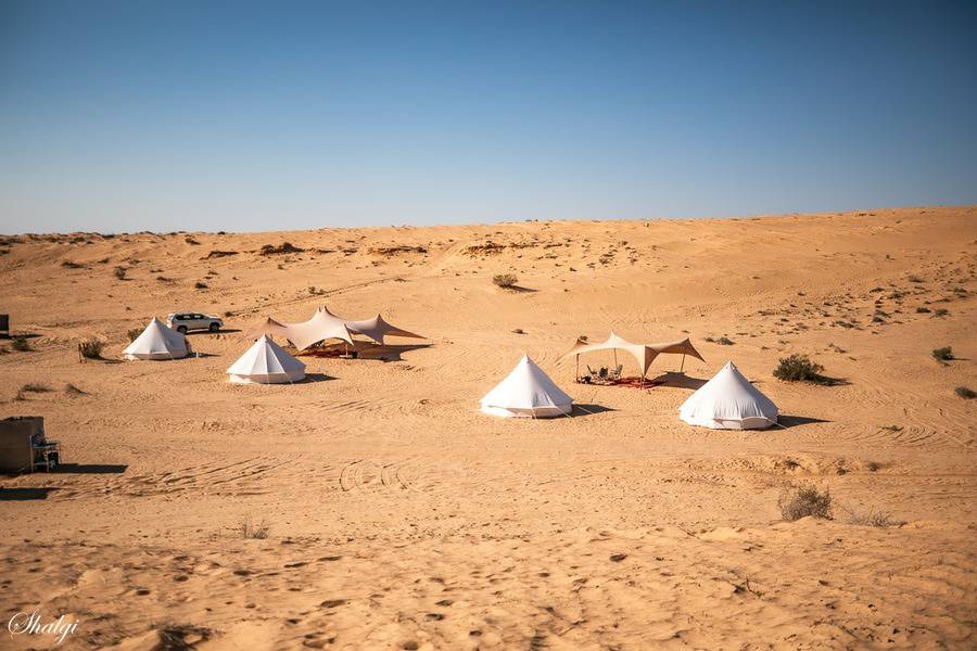 למרות המיקום בלב החולות, התחושה במקום היא של מלון בוטיק המוקפד עד אחרון הפרטים בו האורחים לא צריכים לדאוג לדבר. אוהלי הקנבס הלבנים מאובזרים במיטה זוגית, מזרנים לילדים, מאווררים, שקעים להטענת הטלפון, גופי תאורה סולאריים, מצעים, שמיכות פוך ומגבות, וגם סלסלה עם פירות יבשים וסבונים טבעיים של שירת המדבר. המתחם המשותף כולל פינות זולה ופינות ישיבה מוצלות, כסאות נוח שאפשר להתרווח עליהם בערב ליד המדורה ולהשקיף על הכוכבים ומשחקים שמנעימים את זמנם של האורחים. כמו במלון בוטיק, הצוות הידידותי עוזר בכל מה שצריך – מהקפצה מהחניה לדיונה למי שאין לו רכב ארבע על ארבע ועד להדלקת מדורה פרטית ליד האוהל. למרגלות הדיונה פזורים גלשנים המיועדים לגלישת חולות ומאפשרים גלישה ללא הגבלה, תענוג שבהחלט לא שמור לילדים בלבד. האירוח כולל גם ארוחת בוקר עשירה וארוחת ערב של תבשילי קדרה שניר, השף של המקום, מכין בפויקה על המדורה. במתחם ובסביבה מוצעות פעילויות בתשלום נוסף, כמו ספארי זוחלים לילי, תצפית כוכבים עם טלסקופ מיוחד, טיולי ג'יפים ועוד.