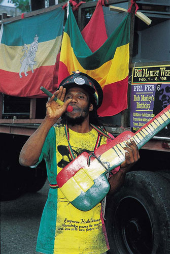 אחת השכונות האלה היא טרנץ' טאון (Trench Town), שבה גדל בוב מארלי כנער,אחרי שהגיע בגיל 13 עם אמו סדלה מהכפר ניין מיילז (Nine Miles) שבמחוז סנט אן (St. Ann) אל העיר הגדולה, קינגסטון. טרנץ' טאון, שאותה הנציח מארלי בשירו המפורסם "Trench Town Rock", נראתה לי תחנה הכרחית במסע בג'מייקה בעקבות מארלי, אבל המשימה התגלתה כקשה משחשבתי. רק אחרי נסיונות שכנוע רבים ובתעריף מופקע נמצא נהג מונית שהסכים לשים את נפשו בכפו ולנסוע לטרנץ' טאון, שנחשבת לשכונה הגרועה ביותר בקינגסטון. חלפנו על פני בדונים ופחונים; אנשים, כולם שחורים, ישבו על מדרגות הבתים עם בקבוק בירה מקומית. כשהתחלתי לטעון את המצלמה, הנהג נחרד. "השתגעת?", צעק בכעס, "שלא תעזי לצלם אותם. יכולים לירות בנו". בזאת תם המסע למחוז נערותו של בוב מארלי. לא קשה להבין למה אנשי טרנץ' טאון אינם מזדהים עם בני המעמד הבינוני הג'מייקני, על אף שאלה וגם אלה שחורים. המעמדות השונים בג'מייקה אפילו אינם מדברים באותה שפה. השפה הרשמית היא אנגלית, אבל לכל שכבה יש ביטויים אופייניים לה, המזהים את הדובר כשייך למעמד. הלבנים, שרבים מהם מתחנכים באנגליה, מדברים אנגלית בריטית מהוקצעת. השחורים האמידים והמשכילים מדברים אנגלית טובה במבטא ג'מייקני. ככל שיורדים בסולם החברתי־כלכלי, הולכת האנגלית ומתערבבת בשפת הפטואה (Patois), שהיא סינתזה בין לשונות אפריקאיות, אנגלית וספרדית. המבטא המקומי כבד, הדיבור מהיר ומקובל להשמיט מלים, תנועות והברות. ואם זה לא מספיק, מסבכת עוד את המצב שפת הראסטות. לשפה זו יש מערכת שלמה של מלות איי (I words) שהשימוש בה אינו רק כלי לביטוי רעיונות, אלא מבטא שיוך לקהילה הראסטפאריאנית. בשפת הראסטות אין "אנחנו", אלא I-n-I (כלומר, I and I, שזה שם לקבוצת הראסטות כולה), בעוד "אני" זה דווקא Me. הרעיון ב־ I-n-I (גם במשמעות של "אני ואתה" וגם במובן "אנחנו") הוא האחווה. שום אדם אינו נעלה על אחר, כולם שווים. בבל, מריחואנה ושמשון הגיבור הפופולריות של מארלי תרמה רבות להפצת רעיונותיה של התנועה הראסטפאריאנית,בדומה למוזיקאים הנודדים באפריקה, המעבירים בשיריהם את ההיסטוריה והאידיאולוגיה של השבט (ראו כתבה בעמ' 68). העברה של תכנים בצורה זו התאימה לתנועה הראסטפאריאנית, שמעצם טיבה אין לה כתבים מקודשים (התנועה התגבשה בעיקר בקרב אוכלוסיה שלא ידעה קרוא וכתוב), לא היררכיה ולא תיאולוגיה מסודרת, אלא פרשנות אפוקליפטית לחזון יוחנן בברית החדשה, מתובלת בסיפורים שעברו מפה לאוזן. אחד הסמלים המרכזיים של הראסטפאריאניות, הלקוח מהברית החדשה, הוא בבילוניה (Babylon, בבל) – מלכות הרשע. בבילוניה הם בני החושך הנלחמים בבני האור, הראסטות, ונשקם הוא מה שהראסטות רואים כמאפייני התרבות הלבנה: כוחנות, אלימות, חמדנות, סדר חברתי מדכא, סגידה לטכנולוגיה ולמודרניזציה, ריחוק מהטבע וגם הפצת נשק בעולם השלישי. בשיחה עם גארי, בחור צעיר, מסופר קצר, לבוש בחליפה ובעניבה, הופתעתי לגלות שהוא רואה עצמו כראסטה. אחרי שעות העבודה, אמר לי, הוא פושט את החליפה והעניבה ויוצא אל קהילה של ראסטות כפריים, הדוחים את הטכנולוגיה ומשתדלים לחיות כמו בימים הקדומים באפריקה. הם מקפידים על הופעה הולמת ובמיוחד על מחלפות שיער ארוכות, המסמלות את ההתנגדות לשיטה ולממסד ומשמשות גם מעין מדים של מסדר דתי. הראסטות מסבירים שבשיער הארוך יש עוצמה מיסטית, בדומה לזו של שמשון הגיבור, אשר לא איבד מכוחו כל עוד לא העלה תער על מחלפותיו.