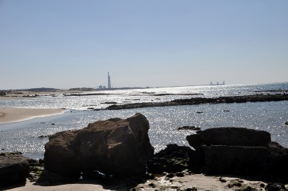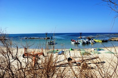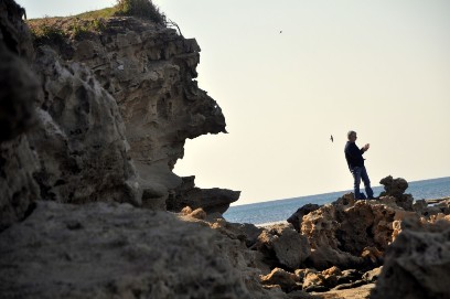 איזה יופי! צעדנו על החוף המשונן לכיון מושבת הדייגים. מצוק סלעי הכורכר הנופלים אל הים משרטט במקום כל מיני דמויות של יצורים ומיני חיים אקזוטיים. עם קצת דמיון ההליכה הופכת במהירות להרפתקה הלקוחה מהמיתולוגיה היוונית הקדומה. מרחוק, בשולי הכפר אנחנו כבר יכולים להבחין באנטינה סלולרית גדולה. רחוק עוד יותר נישאים צריחיה של תחנת הכח הפחמית.