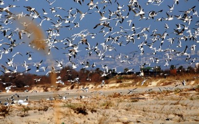 ויתרנו. שמנו פעמינו אל החוף הצפוני היכן שנחל תנינים נוגע בים התיכון. החוף היפיפה היה ריק ושומם לחלוטין, למעט להקות שחפים שהשתזפו להנאתם. נסו לשמוע את הקולות: