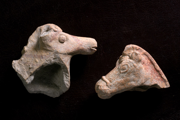 פסלוני הסוסים שהתגלו לאחרונה בשני מקומות בצפון הארץ | צילום: קלרה עמית, רשות העתיקות