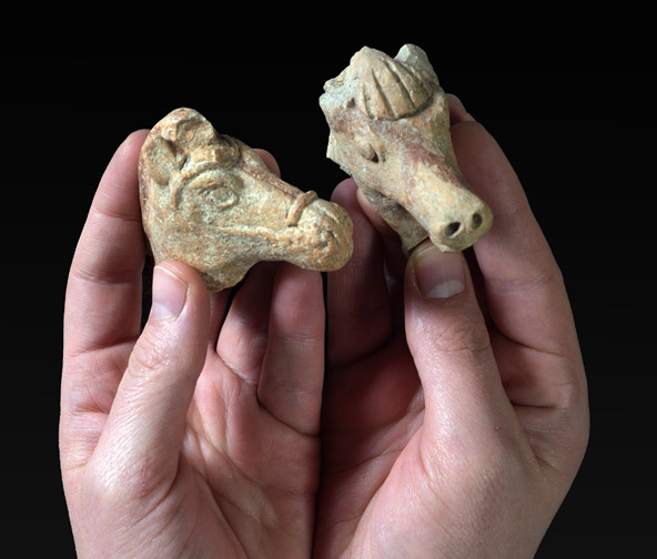 פסלוני הסוסים שהתגלו לאחרונה בשני מקומות בצפון הארץ | צילום: קלרה עמית, רשות העתיקות
