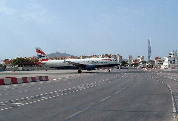 • שדה התעופה של גיברלטר נכלל ברשימת "עשרת שדות התעופה המסוכנים בעולם". יש לו מסלול נחיתה/המראה אחד, ומשני צדדיו יש ים, ואם לא די בכך – רחוב וינסטון צ'רצ'יל העמוס חוצה את המסלול! וכך, בכל פעם שמטוס נוחת או ממריא, הכביש הראשי נסגר לתנועה. לעומדים על הקרקע זהו מחזה מיוחד במינו, אך לטסים מומלץ להתפלל לנחיתה רכה ונטולת סכנה.
