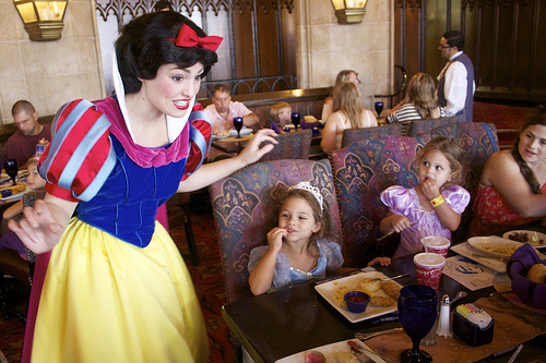 • בחלק מהמסעדות של דיסני ניתן לפגוש את הדמויות האהובות, ולכן, אם החלטתם להוציא כסף על ארוחה במסעדה, כדאי לעשות זאת באחת מהמסעדות האלו. ארוחת צהריים עם נסיכות עשויה להוות, עבור ילדות רבות, את החוויה המרגשת ביותר ביום כולו. כדאי לקחת בחשבון שצריך להזמין מקום זמן רב מראש לארוחות הללו. באתר האינטרנט הזה תמצאו מידע על מסעדות בפארקים, סוגי חבילות הארוחות שאפשר לרכוש ומסעדות בהן אפשר לסעוד עם דמויות דיסני.