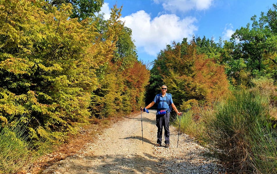מרביתו של הקטע אותו הלכנו, עובר במחוז אומבריה (Umbria), הטומן בחובו מראות מרשימים ותרבות עשירה. מעת לעת נראו מצודות על ראשי ההרים. כהרף עין צצו ונעלמו כפרים ממדייוואליים, שבתיהם החומים כמעט ונבלעו בין הגבעות. במאה השמינית לפני הספירה התיישבו באזור האומברים, שבט חקלאי שוחר שלום ואחריהם הגיעו האטרוסקים והרומאים. בימי הביניים הוקמו כאן, על שרידי הישובים האטרוסקים, ערים ציוריות, המשקיפות על נוף מבותר.