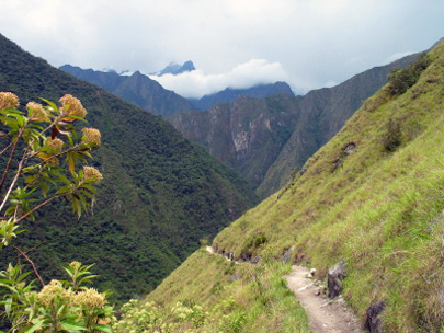 דרך האינקה באזור מאצ'ו פיצ'ו. שתי למות שיחלפו בנתיב הצר יתחככו זו בזו