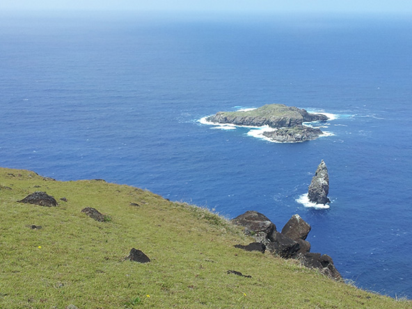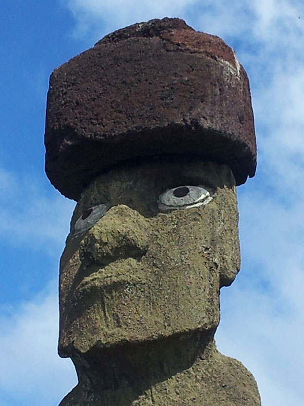 ביום האחרון לפני שעזבנו את האי ביקרנו בכנסיית הנגה-רואה והצטרפנו אל המיסה של יום ראשון. הכנסייה מלאה במאמינים, צ'יליאנים ופולינזים כאחד. שירים מלווים בתופים גיטרות ואוקוללה, כלי המיתרים הפולינזי. לאחר התפילה ירדנו אל החוף והלכנו לאורכו בין בימות פולחן "אהו" ופסלי מואיי ששופצו ושוחזרו למקומם. לפני שנכנסנו לעיירה משך את תשומת לבי בית קברות מקומי וציורי. נעמדנו ליד קבר מקושט בשתי גיטרות ויוקללה. לאחר מספר דקות הגיעו אל הקבר אישה אירופאית יפה ובתה. הן היו אלמנתו ובתו של זמר רוק מקומי שניסה להחיות את המוזיקה הפולינזית בעולם המודרני. בסופו של דבר, העולם היה חזק ממנו, הוא נפל לשכרות וסמים קשים, ומת בצעירותו מבלי להשלים את פרויקט חייו אותו רק החל ליצור.