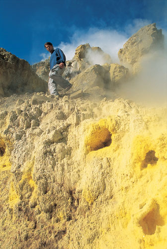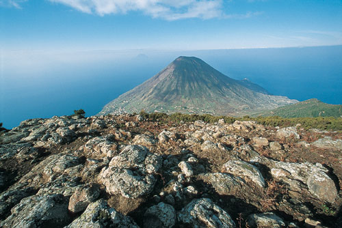 שעתיים אחר כך אני עומד על פסגתו של ההר בחברת שני שווייצרים צעירים שפגשתי בג'קוזי הטבעי. לוע גדול יורד אלכסונית אל מדרונותיו המערביים של ההר. עשן כבד פורץ מעשרות נקודות לאורך הלוע, ובעיקר מאיזור מרוחק בתחתיתו. מדרום נראים היטב חופי סיציליה ופסגתו המושלגת של האטנה, ומצפון שישה איים חרוטיים קטנים, מסודרים בצורת איקס בים הרחב. מזג האוויר ממשיך להאיר פנים, והפלגה של שעה בים שקט מביאה אותנו אל האי סטרומבולי. האי הוא חרוט מושלם של הר געש. מדרונותיו השחורים והתלולים יורדים היישר אל הים מבלי להשאיר קו חוף. באי יש שני כפרים, אחד בכל צד, והקשר ביניהם הוא רק דרך הים. סטרומבולי הוא הנידח שבאיים, אבל גם המרתק ביותר לתייר הוולקאני. הר הגעש ששמו כשם האי פולט ענני אדים, אפר וגופרית, ומדי כמה דקות מתפרץ ברעם ומעיף לאוויר גושי לבה מותכת. פעילות וולקאנית בעלת אופי כזה מצביעה על לבה צמיגה, רווּית נוזלים ולרוב לא מסוכנת. סטרומבולי זכה שתופעה זו תיקרא על שמו: פעילות סטרומבולית. האי זכה לתהילה נוספת בזכות הסרט "סטרומבולי" של רוברטו רוסליני, בכיכובה של אינגריד ברגמן, שצולם במקום. המופע המרהיב של סטורמבולי בעזרת הספר הצלחנו למצוא את בעלת הפנסיון, שעבדה בחנות הטבק, והיא הסכימה בשמחה לפתוח למעננו חדר. בשעת אחר צהריים מאוחרת אנחנו יוצאים בטור אחרי לורנצו, מדריך מוסמך לטיפוס על ההר. העלייה ארוכה ותלולה, ואנחנו מתקדמים לאט. מהכפר, דרך הכרמים, אל הצמחייה שבמורדות הנמוכים ושדות האפר שבחלקו העליון של ההר. ענני עשן כבדים נפלטים מהמדרון שמדרום. קולות פיצוץ עמומים הולכים ומתחזקים ככל שאנו עולים, וריח הגופרית בא והולך עם הרוח.