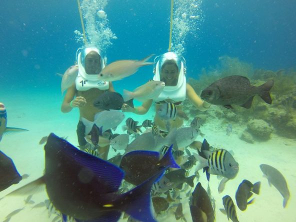 - ב-West View יש כמה דברים מעניינים – הראשון זה חליפת הסנדי (סנדי מהסדרה בובספוג) שאפשר לעשות שם, אם אתם מקצועני צלילה ועשיתם כמה צלילות בחייכם זה כנראה לא ירגש אתכם, אך אם לא, תוכלו לרדת לעומק של 6 מטרים מתחת למים בלי בלוני חמצן, נטו עם קסדה שקופה שיושבת לכם על הראש ומזרימה חמצן.