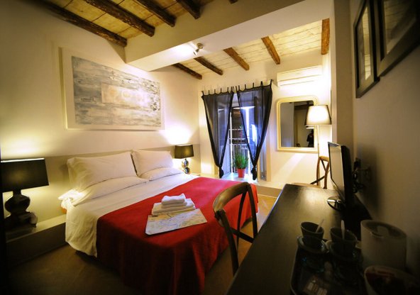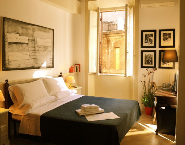 חדר ב-Blue Hostel ברומא. נראה ומאובזר כמלון בוטיק