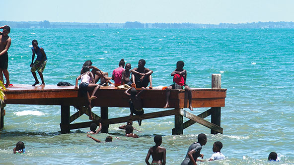 ילדים ונערים בדנגריגה, המרכז הגדול בעולם של בני הגאריפונה – קבוצה אתנית מעורבת של אינדיאנים מהקריביים עם מהגרים אפריקאים
