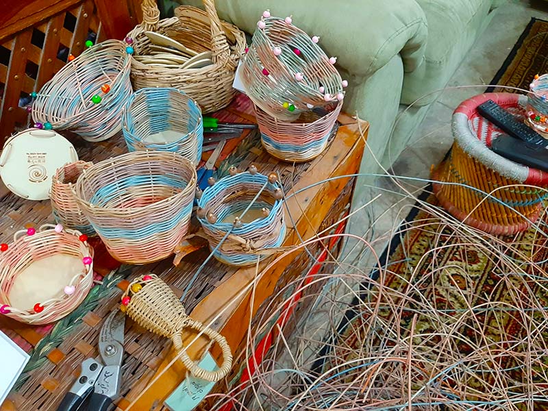 סלסלות שקלעו משתתפים בסדנה של סלימה. כל סלסלה יחידה ומיוחדת, ממש כמו מי שקלע אותה | צילום: רותם בר כהן