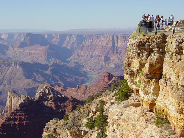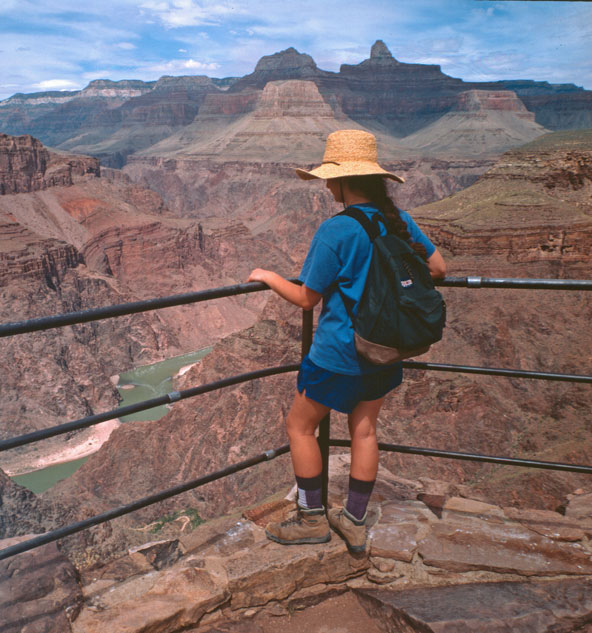 מסלולי הליכה בגרנד קניון Rim Trail – שביל הפסגה הוא שביל נוח, מישורי ברובו וסלול היטב, שנמתח לאורך 21 ק"מ ומציע תצפית נהדרת על הקניון. השביל מתחיל בכל אחד מנקודות התצפית בכפר בגרנד קניון או על דרך הרמיט. Bright Angel Trail – זהו מסלול ההליכה הפופולרי ביותר בפארק. המסלול מתחיל ממערב ללודג' Bright Angel בגדה הדרומית. במהלך ההליכה לאורכו של שביל ההליכה התלול מוצעת תצפית יפה על נהר הקולורדו שזורם בתחתית הקניון. למרות הפופולריות שלו, רמת ההליכה בשביל קשה ומומלץ להקדיש יומיים להליכה בשביל עם לינה באתר הקמפינג Bright canyon. South Kaibab Trail – גם שביל זה, שמתחיל ב-Yaki Point, זוכה לפופולריות רבה, משום שהוא מגיע עד לנהר הקולורדו שבתחתית הקניון ומציע תצפיות מרהיבות לאורכו. זהו שביל תלול וקשה וכדאי להקדיש לו יומיים, עם לינה באתר הקמפינג Bright Angel.
