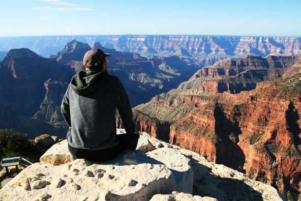 בתמונה הפותחת: מטייל משקיף על הקניון בנקודת התצפית Bright Angel שבגדה הצפונית | צילום: שאטרסטוק
