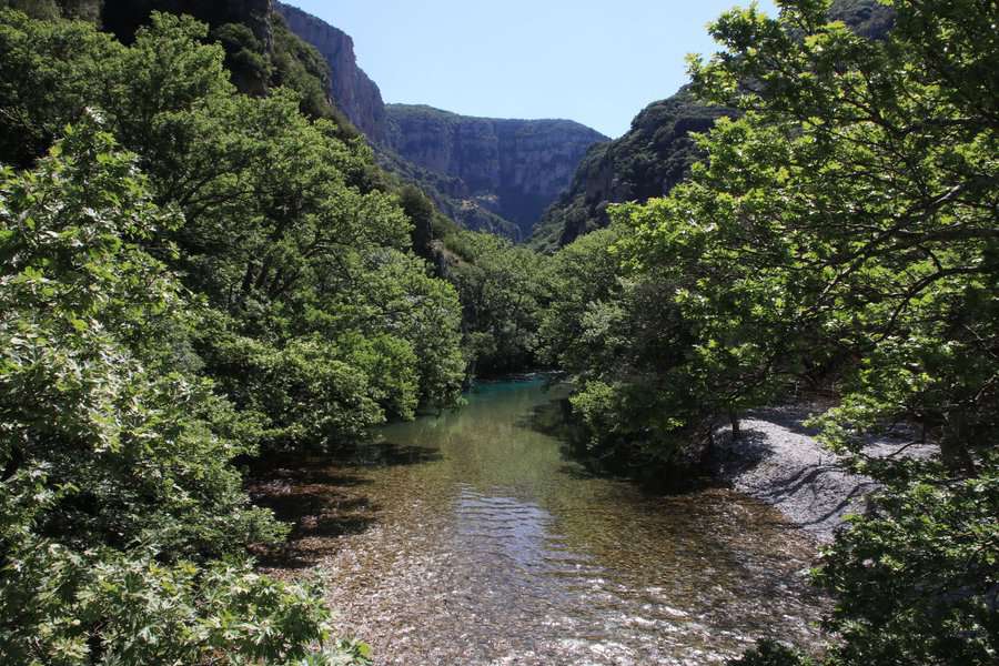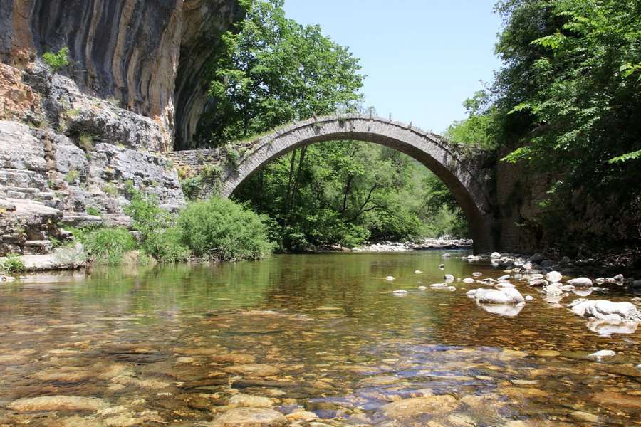 הגשר בעל הקשת המוארכת נבנה בשנת 1853, ליד המקום שבו קניון ויקוס יוצא לאוויר הפתוח והופך לנהר ווידומאטיס. מכאן אפשר לצאת לשיט נהרות רגוע, או לצאת לטיול רגלי בשביל המלווה את הנהר עטור העצים.