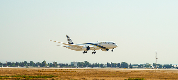 מטוס הדרימליינר "ירושלים של זהב" לקראת הנחיתה בנתב"ג | צילומים: עופר חג'יוב