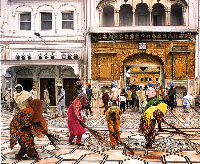 | פנג'ב, צלייניות מקות את רחבת מקדש הזהב בארמיצר. מפגש עם נשים בהודו מזמן מחשבה על מר גורלן. מדהים לגלות שהן חושבות אחרת. על הכל | צילום: ליסה קרמר |