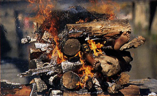 | טקס שריפת גופה. הטענה היא תמיד שהאלמנה קפצה לאש מרצונה. המשתתפים והצופים בסטי נמנעו מלציין את הנשים שהתחרטו וקרוביהן דחפו אותן לאש חזרה | צילום: נעם סחייק |