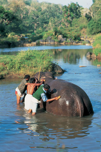 עם חזרתה לראשות מדינת טאמיל נאדו (Tamil Nadu) בדרום הודו, תרמה סלבי ג' ג'אילאליתה, בעצת האסטרולוג האישי שלה, פיל בן 12 למקדש גורוואיור (Guruvayur), המקדש שמחזיק במספר הפילים הגדול ביותר בהודו. ב־2003, בעקבות השתוללותו ההרסנית של פיל מורעב באחד ממקדשי צ'נאי (Chennai, מדרס), הכריזה ג'אילאליתה על הקמת מחנה שיקום שנתי לכל פילי המקדשים והפילים שבבעלות פרטית ברחבי טאמיל נאדו. "חובתנו לדאוג לכל החיות, ובמיוחד לפילים, שהם חיות היבשה הגדולות ביותר", היא צוטטה בעיתונים המקומיים.הפילים העומדים בשערי ערי המקדשים הם אחד מסימני ההיכר של דרום הודו. הפיל נחשב לחיה קדושה בעיקר בגלל גנש, האל האהוב עם ראש הפיל. כל מקדש המכבד את עצמו מחזיק פיל אחד ואף יותר, ולמעשה, רוב פיליהמקדשים הם פילות בגלל האופי הנוח והקלות היחסית שבאילופן. פילי המקדשים משתתפים בתהלוכות דתיות חשובות ומאולפים להניף את החדק שלהם ולהניחו בעדינות על ראש המאמין או התייר בתמורה למטבע של רופי או יותר. הפיל לוקח את המטבע בעדינות ובמומחיות ומעבירו למאהוט (המטפל בפיל ונהגו). לעתים קרובות, תמורת סכום גבוה יותר, זוכים ילדים לעלות על ראש הפיל ולהצטלם. יש פילים שכל כך רגילים להצטלם עד שהם ישר מפנים את ראשם למצלמה.מאחורי המחזה שובה הלב מסתתרת מציאות קשה של תנאי החזקת הפילים. החיות עומדות שעות ארוכות על רגליהן, קשורות בשלשלאות ברזל, וחוזרות על אותן פעולות תיירותיות פעמים רבות ביום. רוב הפילים פוסעים רק על בטון ולא על אדמה, ישנים בחללים צרים למידותיהם ומקולחים בצינור או בעזרת דליים ולא בצורת הרחצה האהובה על בני מינם בטבע: הנהר. בעיה מרכזית נוספת היא של תזונה: עולי הרגל והמבקרים הרבים מאכילים את הפילים לא רק בבננות אלא גם בהרבה מאוד ממתקים, ומאהוטים לא מקפידים להאכיל אותם באוכל בריא, כדי לחסוך בעלויות. מצבם, מסכימים רבים, הוא הגרוע ביותר מבין הפילים בהודו. לכל פיל יש שם שני מכשולים עיקריים עמדו בפני קיום המחנה: העלאת הפילים למשאיות והנסיעה הארוכה בדרכים ההרריות. אמנם בשבועות לפני ההתכנסות אימנו המאהוטים בכל המקדשים את פיליהם בעלייה במדרגות ובכניסה למשאיות, אך ברגע האמת היו פילים שלמרות נסיונות השכנוע, האלימים בחלקם, סירבו לשתף פעולה. יתרה מכך, אחת המשאיות התהפכה בדרךבגלל פיל שהשתולל בתוכה. בסופו של דבר, מתוך 81 פילים, רק 55 הגיעו אל היעד הסופי. למרות התקלות וההשתתפות הלא מלאה, המחנה יצא לדרך, וכל אחד מ־55 המשתתפים נקשר לעץ עם שלט שנושא את שמו. אף שחופש הוא אולי הדבר הטוב ביותר שאפשר לתת לפילים, רשויות המחנה סירבו לאפשר מפגש בין החיות ולא הניחו להן להסתובב חופשי. "זו הפעם הראשונה שהפילים האלה נמצאים ביער עם כל כך הרבה פילים אחרים", מסביר לי וטרינר המחנה ס' שאנמוגאסאנד. "מכיוון שהם אינם רגילים לנוכחות הפילים האחרים, אנחנו לא יודעים איך יתנהגו ולכן לא מסתכנים".