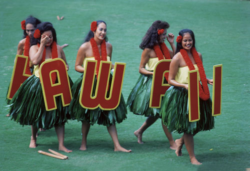 אחרי האוכל אנו צועדים בשביל ארוך בתוך הגינה, אורות לפידים מאירים את דרכנו. אנחנו מגיעים לאמפיתיאטרון פתוח. אני מביטה לשמים, אלפי כוכבים מנצנצים. המופע מתחיל; זהו מופע ריקודים מלווה בתזמורת. המוזיקה קצבית, ובמופע הצבעוני רוקדים ריקודי הולה מקומיים, אך גם ריקודים מטהיטי, מיפן ומהפיליפינים. הרקדניות לובשות חזיות עשויות אגוזי קוקוס וחצאיות רפיה. הגברים חשופי חזה. לעתים קרובות הרקדנים שמנמנים, שלא לומר שמנים, ומלאי קסם וחן. כלי הנגינה עשויים קוקוס ודלעת, והגיטרה ההוואית המפורסמת נקראת יוקליילי.