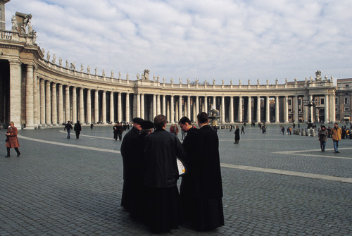 | עד ימי מוסוליני נפתחה במפתיע הרחבה הנפלאה של כנסיית סן פְייטְרוֹ מתוך הסמטאות של הבּוֹרְגוֹ, רובע עממי שצמח בסבך מאות השנים של שלטון הוותיקן. רוח הרהב של הפשיזם מחקה את הבתים העתיקים וסללה על מקומם את וִיָה דֵלָה קוֹנְצ'ילְיאצְיוֹנֵה – "דרך הפיוס" הרחבה, נטולת המסתורין, המנציחה את הפיוס בין שליטי הכנסייה למדינה האיטלקית ב־1929. דרך זו היא שמובילה את תנועת הצליינים בני זמננו, כורעים תחת משא מצלמות הווידיאו, בקו ישר אל תוך לב לבו של הממסד הקתולי. מי שחוצה את הנהר ומתבונן בוותיקן מפנה את גבו לרומא, וכדי לשוב ולמצוא אותה, עליו לטפס אל כיפת סן פייטרו ולהשקיף אל העיר הנפרשת למרגלותיה במרחק קטן, אך רב משמעות. הקריה הקדושה היא מדינה ריבונית, המשמרת על פני שטח של 44 קילומטרים רבועים עיר שמים אסורה ואת אוסף אוצרות האמנות העמוס ביותר בעולם המערבי. היא מפעילה אתרי אינטרנט, משרדי עיתונות ויחסי ציבור מסביב לשעון ותחנת טלוויזיה לוויינית עם אחוזי צפייה גבוהים.