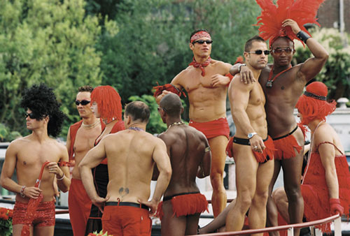 כנסייה בעליית הגג הסובלנות הזאת גם השתלמה להולנדים. אותו מרוול מצביע על הקשר שבין הסובלנות הדתית של אמסטרדם ובין העובדה שעושרה בא לה מקשרי מסחר חובקי עולם שלא היו אפשריים בלי מתן זכויות מסוימות לקתולים וללותרנים, ליהודים ולמוסלמים: אמסטרדם, הוא אומר, שבה גרים תורכים ונוצרים, עובדי אלילים ויהודים, היא "בנק של מצפון", ואין השקפה, מוזרה ככל שתהיה, שאין לה בו אשראי ושאינה נסחרת בבורסה. "חופש המצפון" שהנהיגו מנהיגי הולנד אחרי השחרור מעול הספרדים בא לידי ביטוי בכך שלמרות הפרהסיה הקלוויניסטית הם התירו ללא־קלוויניסטים – קתולים, למשל – לקיים את פולחנם בביתם פנימה. אחד האתרים המוכרים באמסטרדם הוא כנסייה בשם "Ons‘ Lieve Heer op Solder" (אדוננו היקר בעליית הגג), שסוחר קתולי עשיר בנה ב־1661 בקומה העליונה של שני בתי תעלה שחיבר יחד. יותר מזה, הסובלנות היחסית הזאת אפילו אפשרה לאנשים לא להאמין, ראו מקרה שפינוזה, שהקהילה היהודית אמנם החרימה, אבל שלטונות אמסטרדם לא נגעו בו לרעה, והיא גם זאת שעשתה את הולנד למקום בטוח יחסית לפרסם בו ספרים שלא היו עוברים את הצנזורה בארצות אחרות. "אולי בשום מקום חוץ מהולנד לא היה דקארט מהין ללמד משנה פילוסופית שבאה בקשרי מלחמה גלויה ביותר עם כל מסורות העבר", כתב היינריך היינה (ב"דת ופילוסופיה באשכנז", תרגום פרלמן); והוא לא היה מקרה יוצא דופן: באמצע המאה ה־17 ראה שם אור ספרו הידוע של האנגלי הובס, "לווייתן", ובסוף אותה המאה מצא שם מקלט הצרפתי פייר בייל, מחבר ה"מילון היסטורי וביקורתי" (אבן דרך בתולדות הספקנות).  | משתתפים במצעד הגאווה המתקיים בכל שנה בקיץ. בין הקבוצות השונות בהולנד שררה הסכמה רחבה על העיקרון של כבוד לאחר | צילום: ברק אוסרוביץ' |