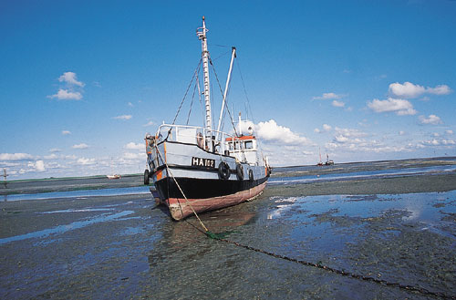 אנחנו שטים בין האיים סחירמוניקוג (Schiermonnikoog) ואמלנד (Ameland). ג'וני קוסטר ולואיס דה יונחה הם הקפטנים של סירת הבוסחוואד (Boschwad). שניהם מכירים את ים ואדן (Waddenzee), ים הדייגים, כמו את כף ידם. לא קל לנווט בים הדייגים. 75 אחוז מהמים שעליהם אנו שטים עכשיו יתייבשו בעת השפל. מה שנראה כמצולותיו של ים עמוק אינו אלא שכבה בגובה של לא יותר מכמה מטרים. פירוש הדבר שאפשר לנווט את  | | תושבות האי אמלנד בלבוש מסורתי. זה שנים רבות שתושבי האיים מתפרנסים מתיירות, כמו הנשים הללו, שרוקדות ריקודים הולנדיים לעיני התיירים הסקרנים |